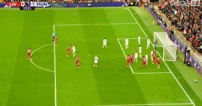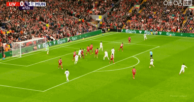 第53分钟,萨拉赫角球进攻中凌空打门,皮球弹地后高出横梁