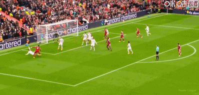 第14分钟,萨拉赫任意球送到禁区,范戴克头球攻门顶偏